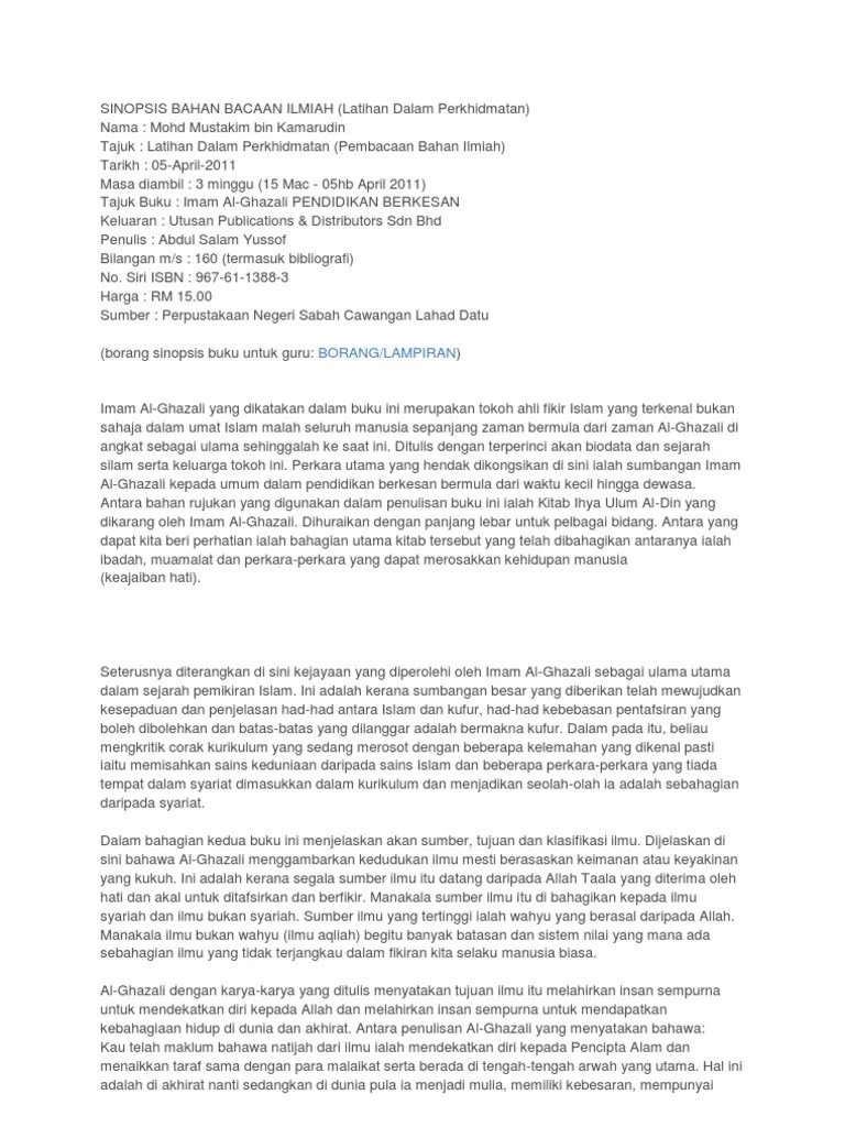 10 kesimpulan secara izharnya, buku ini sesuai untuk bacaan sekeluarga kerana . Nama guru muhaini bt muning 2. Buku setebal 113 halaman ini telah dihasilkan oleh penulis yang. Lampiran c borang sinopsis buku nama sekolah: Sinopsis buku ini mengandungi huraian dan contoh cadangan aktiviti yang boleh dijadikan panduan guru di peringkat sekolah rendah. Buku ini mengumpulkan 42 hadis yang berkaitan dengan amalan dan bacaan yang mudah, tetapi pahala dan ganjaran yang sangat banyak yang diberikan . 3 | course hero buku bacaan basa sunda teu pegat asih (roman novel) pengarang . Borang sinopsis buku nama sekolah: